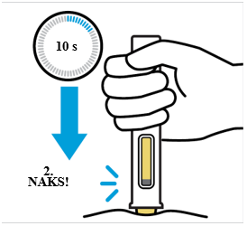 Jatka esitäytetyn kynän pitämistä ihoa vasten painettuna noin 10 sekunnin ajan, kunnes kuulet toisen naksahduksen