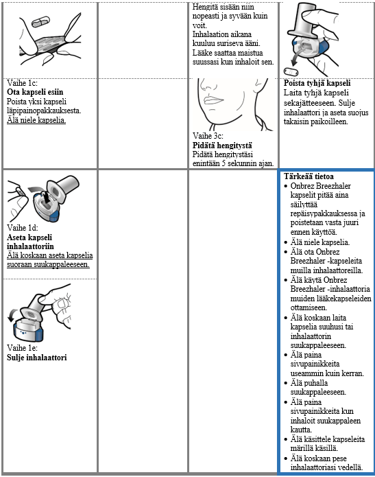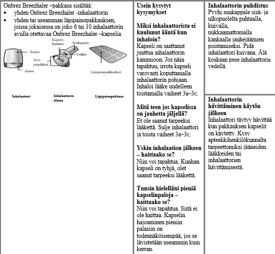 Lue Käyttöohjeet kokonaan ennen kuin käytät Onbrez Breezhaler -valmistetta.