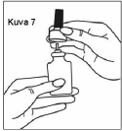 - Sulje toinen sierain sormella ja aseta varovasti pullon kärki toiseen sieraimeen, osoittaen kärjellä hieman nenän ulkoreunaa kohti (katso kuva 3).