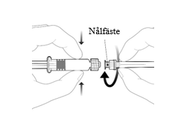 Fäst nålen på sprutan genom att ansluta den till Luer Lock kopplingen och rotera ett kvarts varv medsols tills du känner att den låser sig.