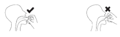 Tryck ned pumpen tre gånger med snabba, jämna rörelser, och var noga med att trycka ned pumpen helt och hållet vid varje sprayning samt att lyfta fingret från pumpen mellan varje sprayning.