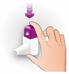 • Det är viktigt att hålla inhalatorn i upprätt läge.