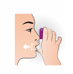• Se till att hela munstycket är väl inuti munnen så att medicinen kommer in i dina lungor.