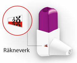 Inhalatorn har ett räkneverk som visar hur många doser det finns kvar. Räkneverket räknar ner vid var 5:e dos. Räkneverket blir rött när det finns 20 doser kvar.