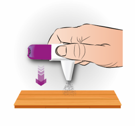 • Om du av misstag klickar på Easyhaler när du skakar inhalatorn, töm ut pulvret ur munstycket enligt instruktionerna nedan.