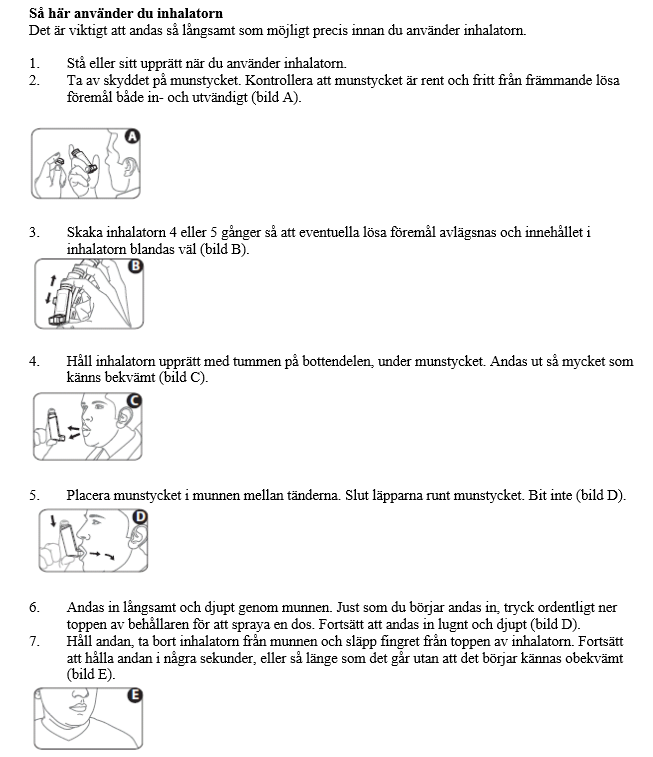Det är mycket viktigt att följa läkarens instruktioner om hur många inhalationer du ska ta och hur ofta du ska ta ditt läkemedel.