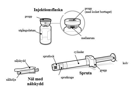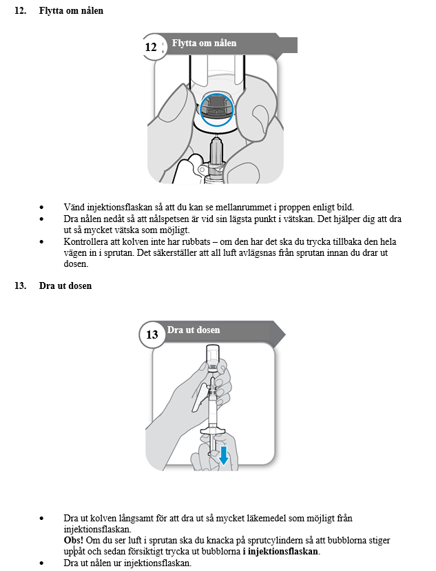 - Injektionsflaskans form medför att en mycket liten mängd läkemedel lämnas kvar i injektionsflaskan. Det är normalt. För att säkerställa att endast en liten mängd läkemedel lämnas kvar, se till att nålspetsen är placerad så lågt som möjligt i injektionsflaskan när du drar ut din dos.