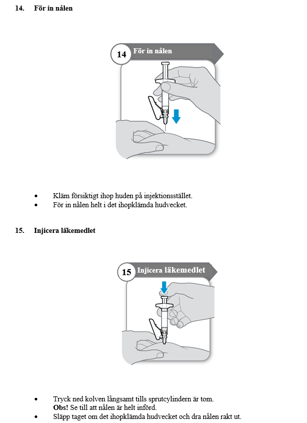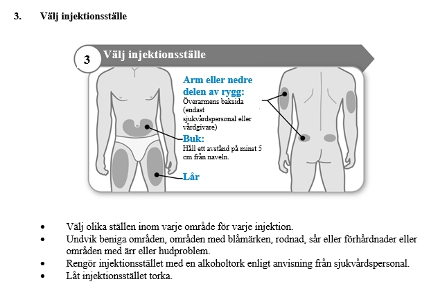 Injicera alltid detta läkemedel exakt enligt läkarens eller apotekspersonalens anvisningar. Rådfråga läkare eller apotekspersonal om du är osäker.