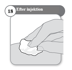 - Vid behov använd en ren bomullsrondell och tryck försiktigt på injektionsstället.